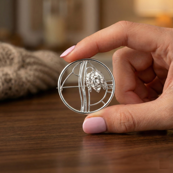 Charles Rennie Mackintosh brooch “Show” (Fritillaria). Sterling silver.