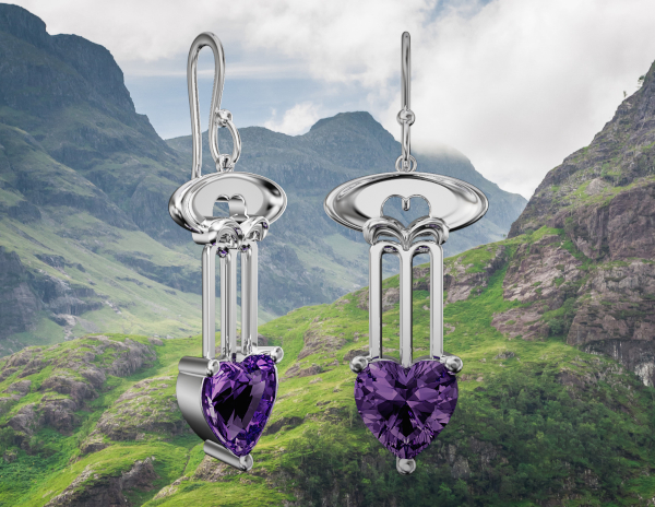 Charles Rennie Mackintosh earrings “Dunure”. Sterling silver. Set with heart cut amethysts.