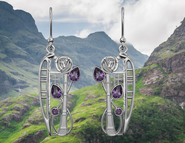 Charles Rennie Mackintosh earrings “Nairn”. Sterling silver. Amethysts.