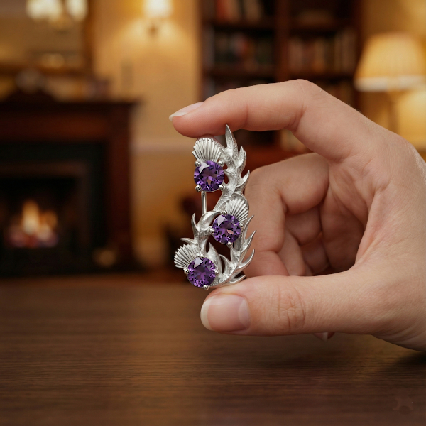 Scottish thistle brooch with amethysts “Nectar”. Sterling Silver.