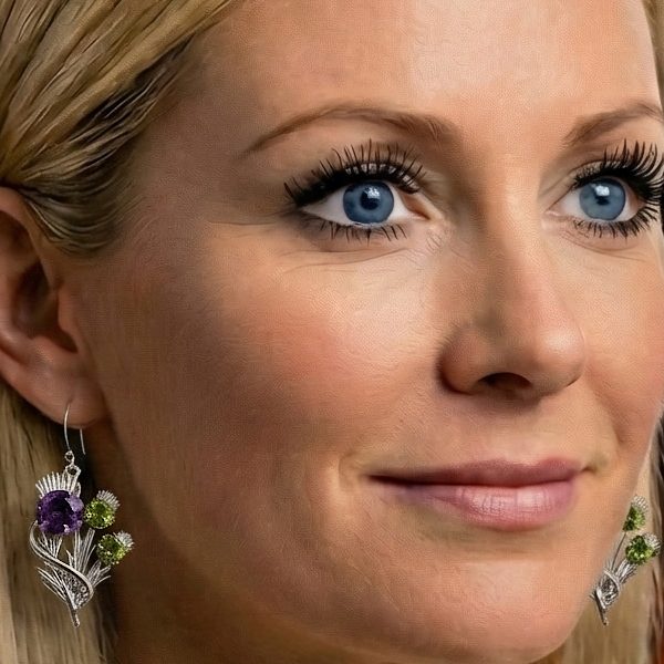 Scottish thistle earrings with amethysts “Croy”. Sterling silver.